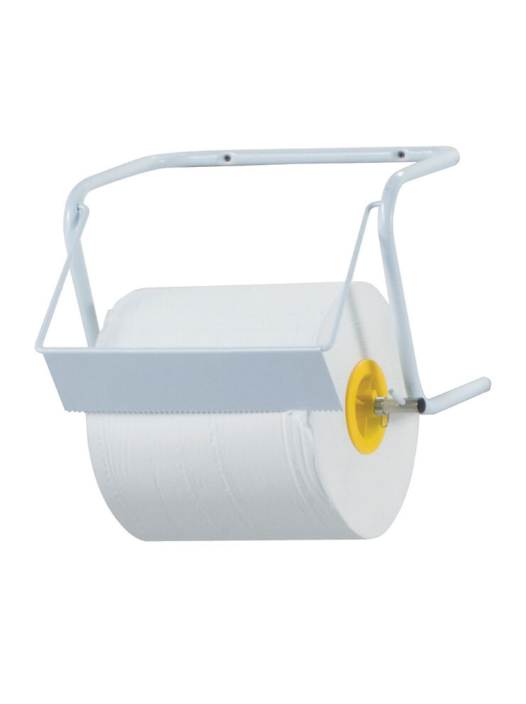 Industrial paper roll holder in white lacquered metal. Made from high-quality materials, complete with wall-mounting kit.